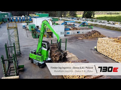 A powerful driving machine with high safe working loads, the SENNEBOGEN 730 is just as at home at the saw mill sorting line as it is with a trailer in the log yard. The machine impresses with its powerful drive, convenient reach with a stacking height of up to 10 meters, and compact measurements. Thanks to a 360 degree slewing uppercarriage, the Pick & Carry material handler can navigate narrow spaces without the need for complex turning manoeuvres.